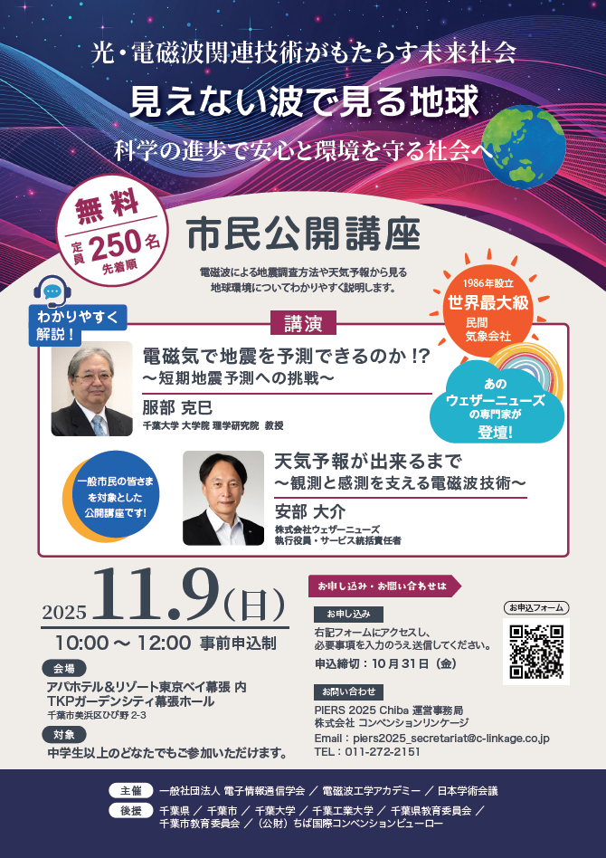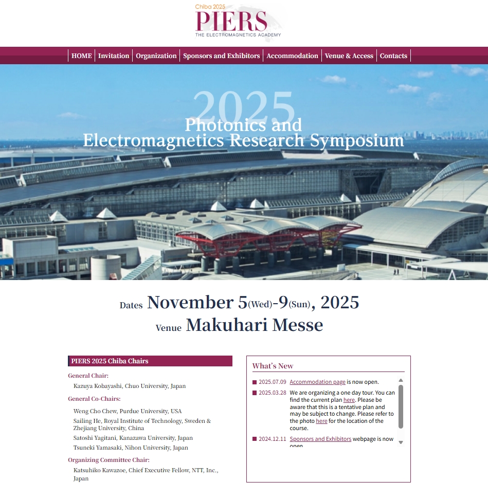 2025年11月5日(水)~11月9日(日)の5日間、幕張メッセ 国際会議場において「2025 Photonics and Electromagnetics Research Symposium (PIERS 2025 Chiba)」が開催されました。約50ヵ国から1,600名を超える研究者が集まり、盛会のうちに終了いたしました。